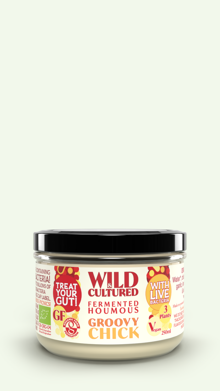 Introducing Groovy Chick, our live, fermented, and organic houmous that’s as smooth as it is flavourful! With a deliciously garlicky kick, blended with whole tahini and extra virgin olive oil, this houmous is a true taste sensation.